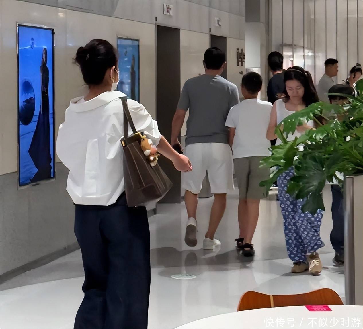 42.日前,有路人偶遇秦海璐一家三口外出游玩。父亲牵着儿子走在前方,背影轮廓极为相似,仿佛复制粘贴一般。